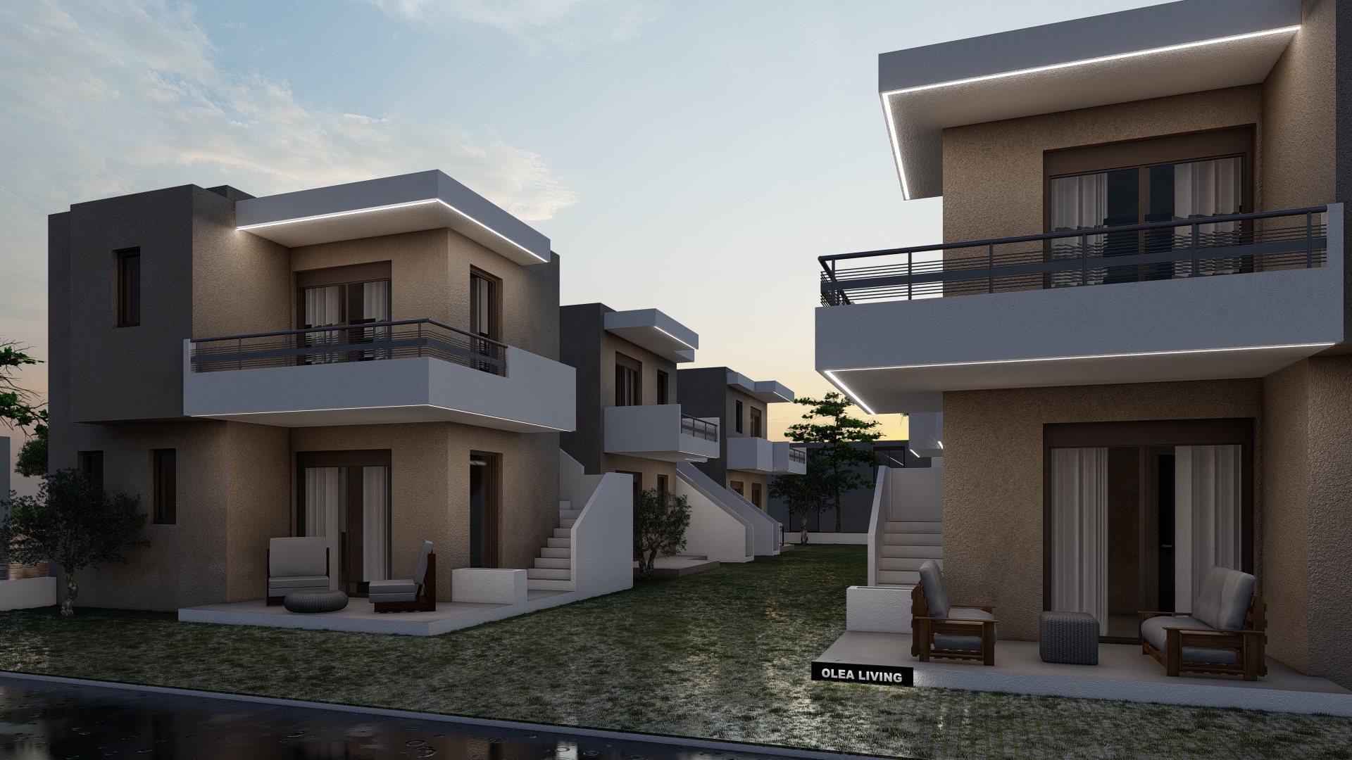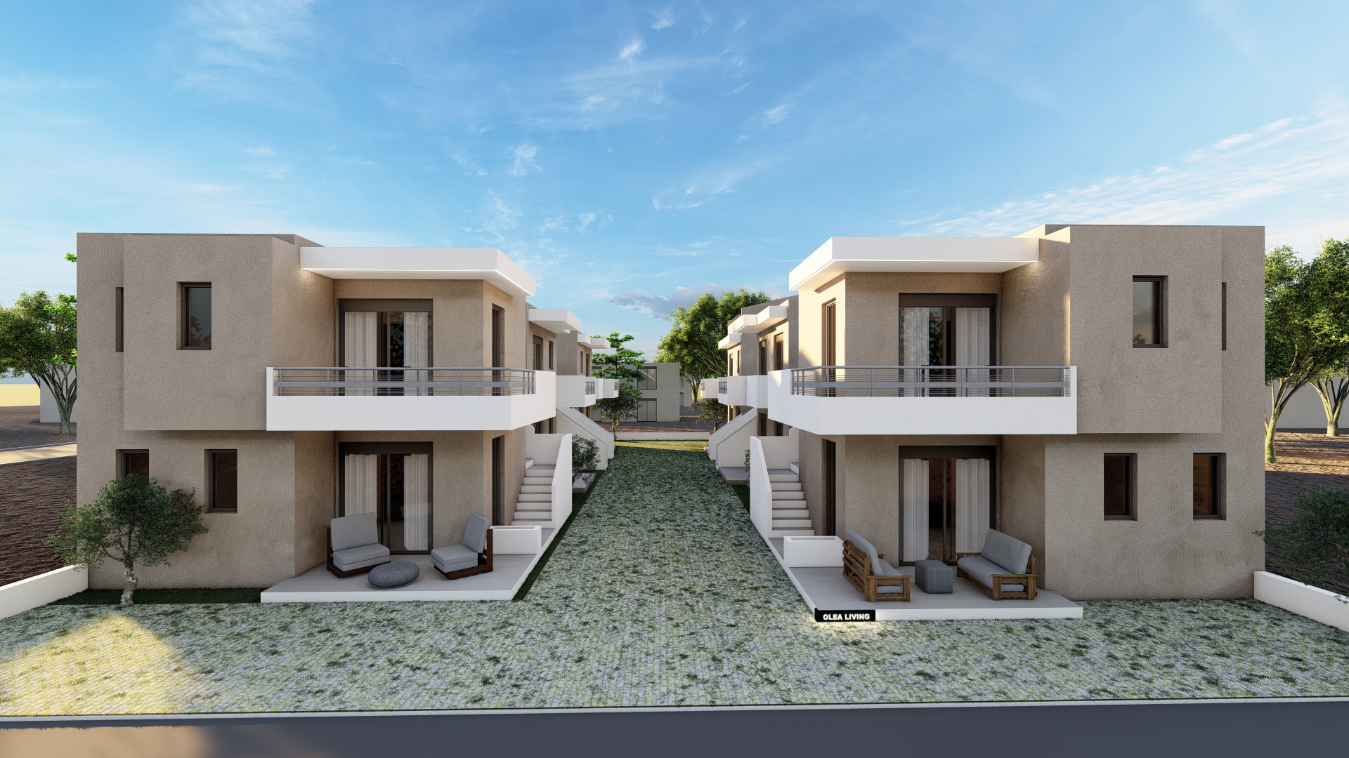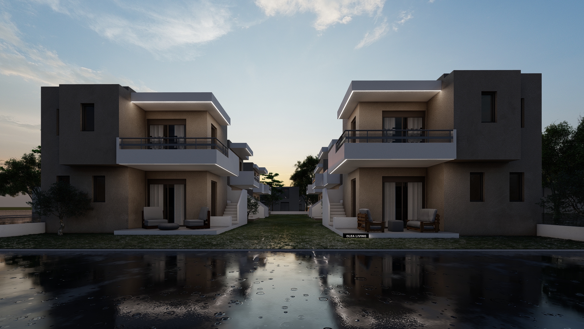 Olea Living is a newly developed, carefully designed residential complex in Stavros, Thessaloniki, just 170 meters from the sea. It consists of modern semi-detached buildings with independent floor apartments, offering enhanced privacy and a strong sense of autonomy, in a quiet and tasteful area where the natural surroundings and the scent of olive trees meet contemporary architecture.