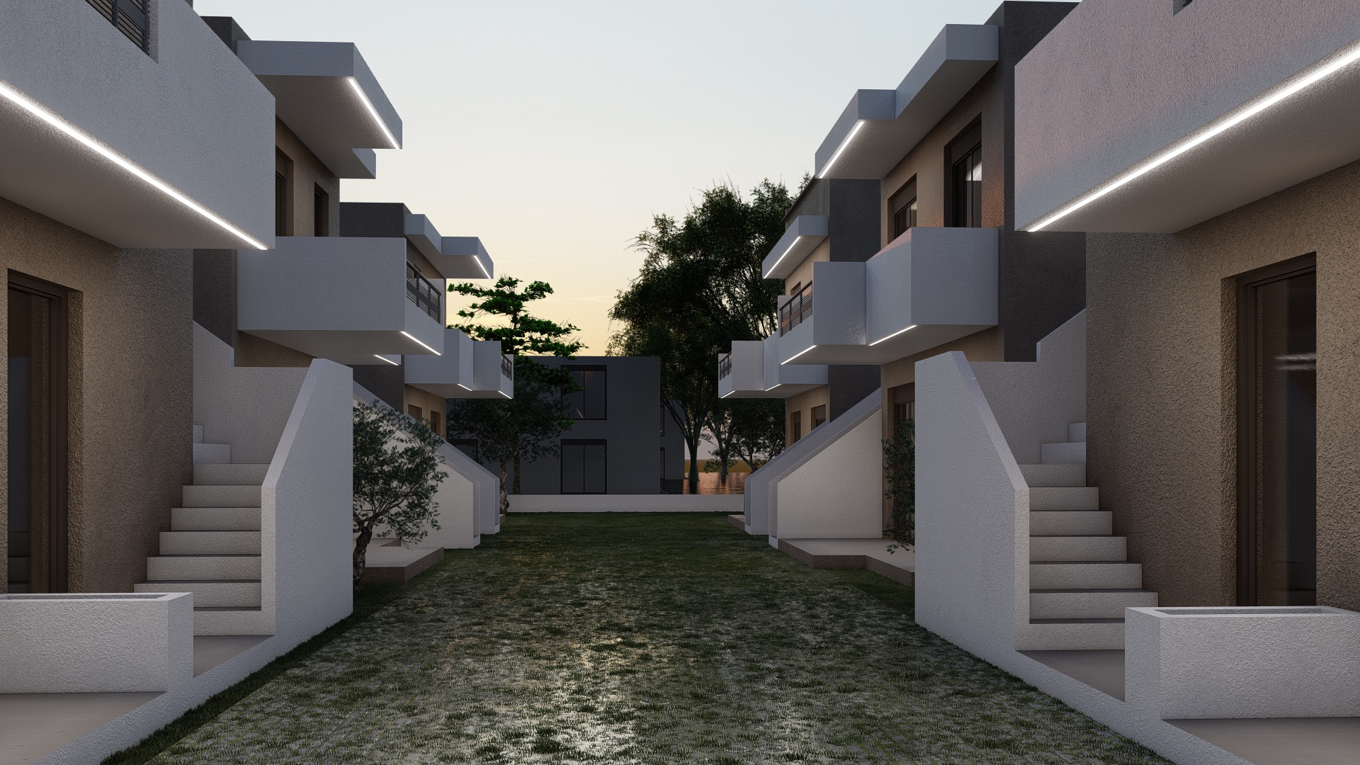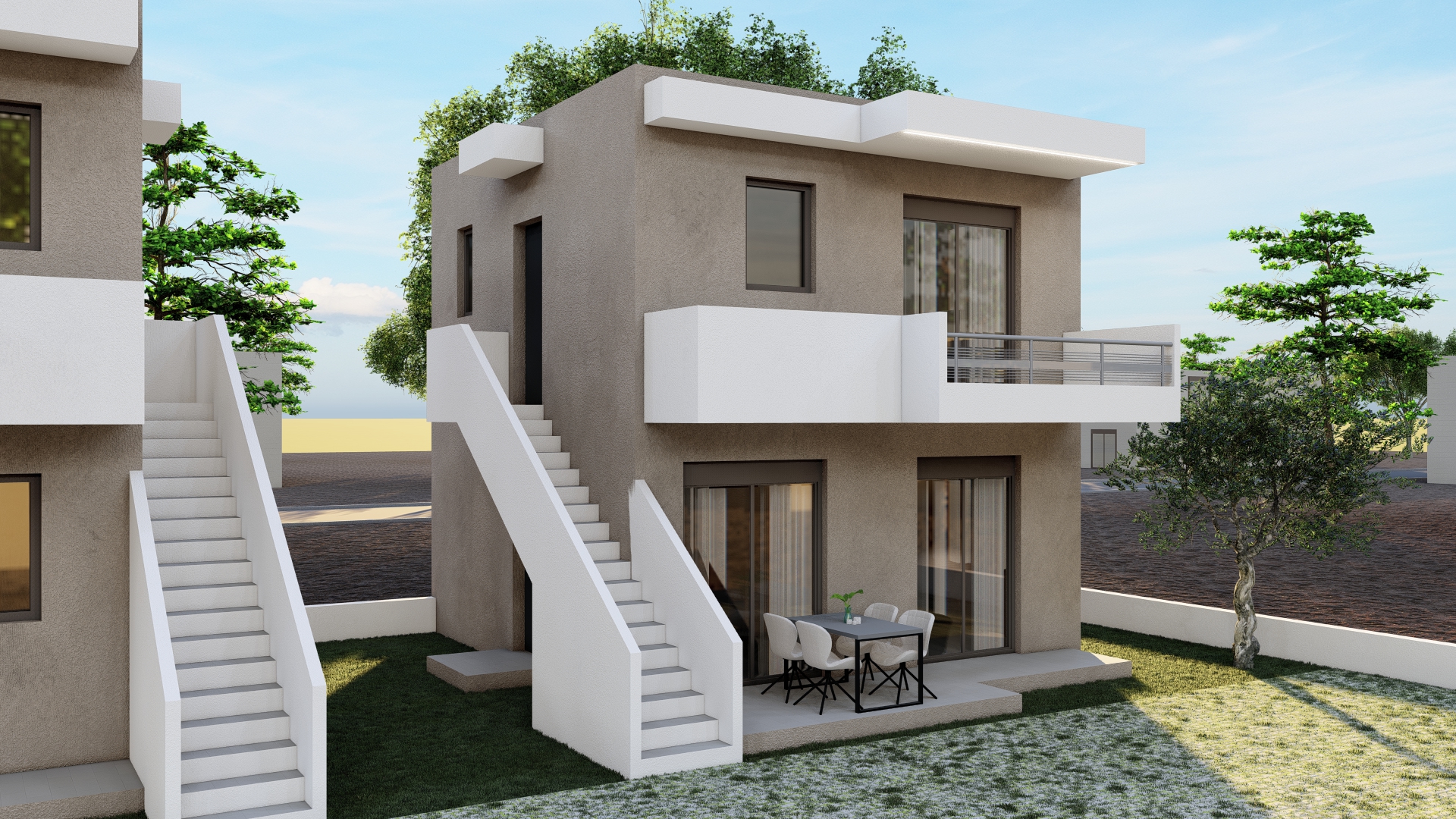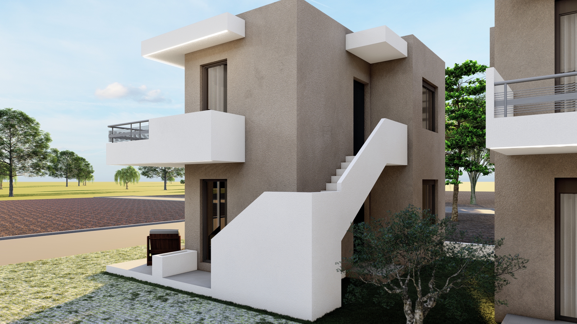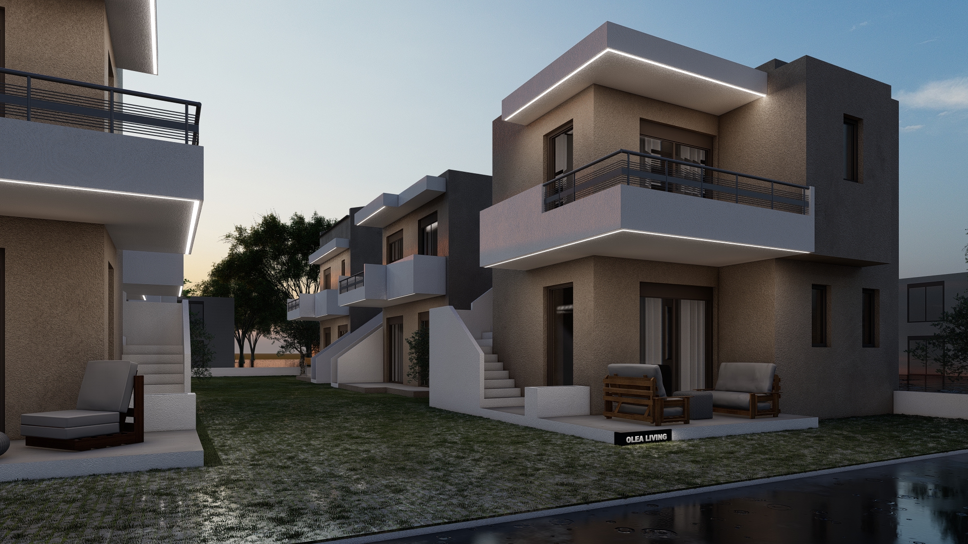 Olea Living is a newly developed, carefully designed residential complex in Stavros, Thessaloniki, just 170 meters from the sea. It consists of modern semi-detached buildings with independent floor apartments, offering enhanced privacy and a strong sense of autonomy, in a quiet and tasteful area where the natural surroundings and the scent of olive trees meet contemporary architecture.